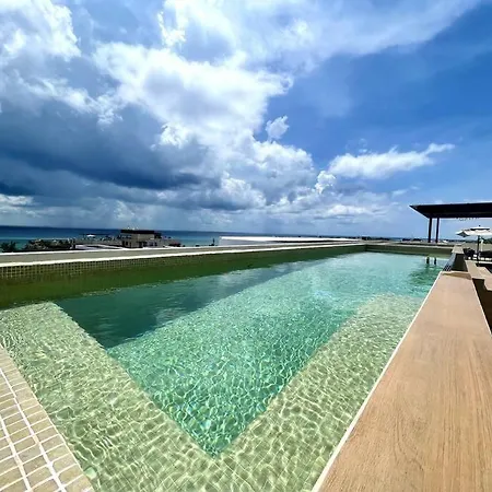 Modern 5Th Av Apt - Rooftop Pool-Distrito Corazon F5 Playa del Carmen está situado en el distrito Centro, a tan solo 1 km del Parque Los Fundadores. Situado en frente de la Quinta Avenida, el apartamento cuenta con útiles artículos de limpieza, como una lavadora.